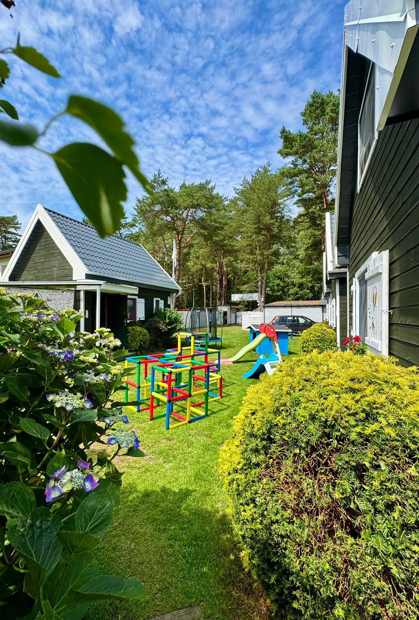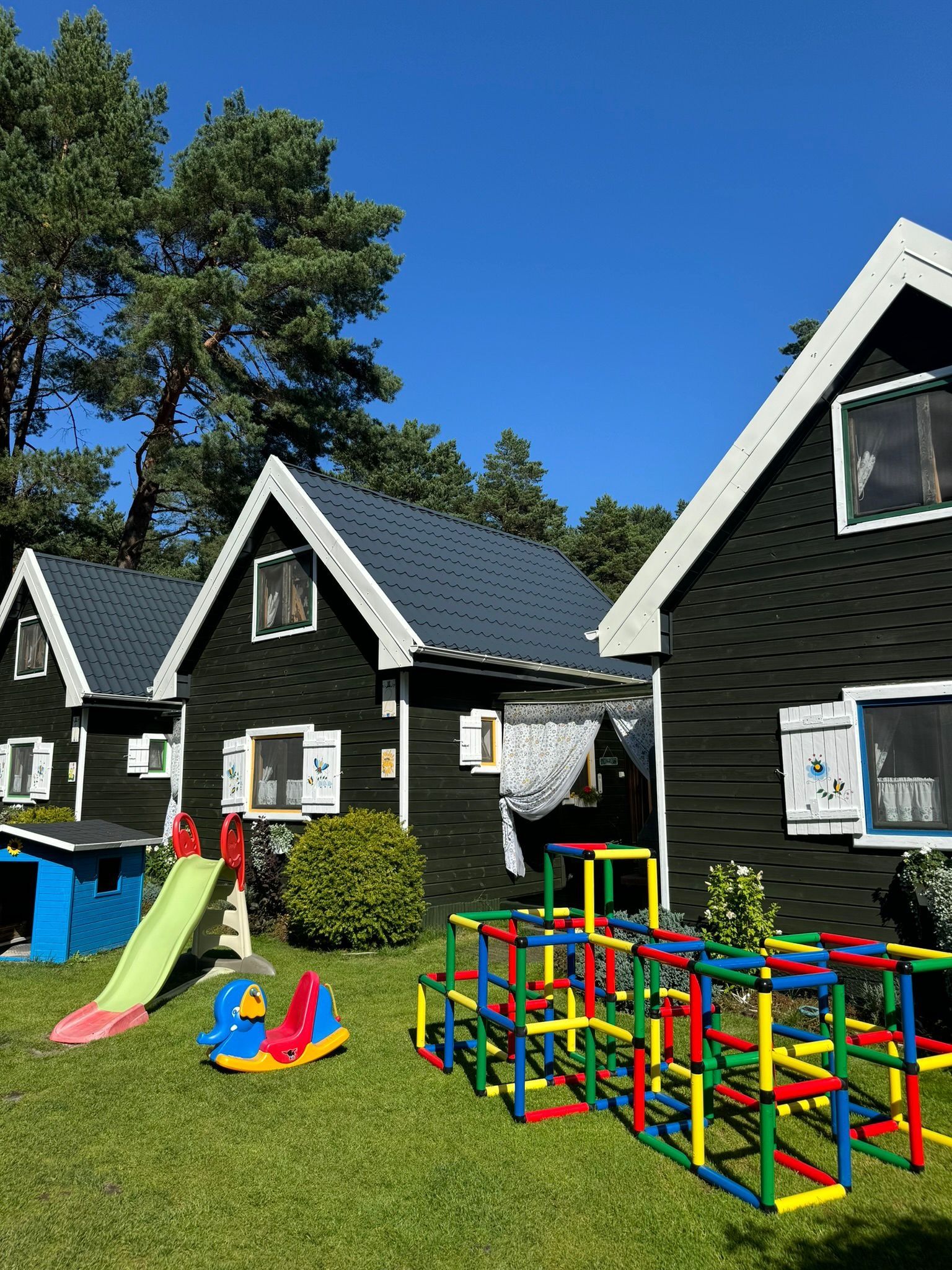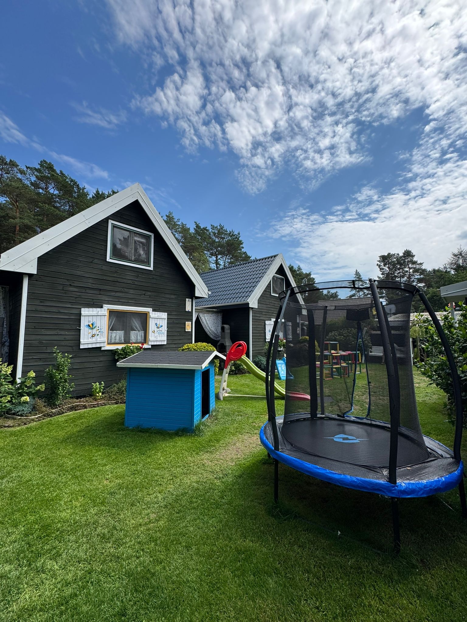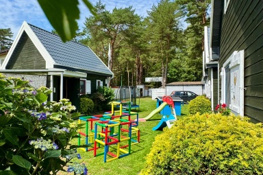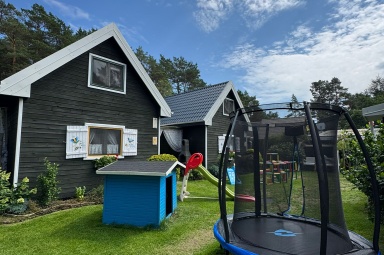 Hiermit laden wir Sie in unsere, am Waldrand gelegenen Ferienhäuser für insgesamt vier mal sechs Personen, ganz herzlich ein. Im Erdgeschoss befindet sich ein Aufenthaltsraum mit den notwendigen Küchen- und Kochutensilien für den täglichen Gebrauch und ein Bad mit Dusch. Im Wohnzimmer befinden sich ein Schlafsofa für zwei Personen, ein Tisch mit Stühlen, ein Sofa, ein dreitüriger Schrank, Tv, Radio, Bügelbrett und das dazugehörige Bügeleisen. Das erste Stockwerk ist durch eine Holzwand in zwei gleich große Zimmer geteilt, in denen sich jeweils zwei Einzelbetten befinden. Zur Einrichtung lässt sich sagen, dass das eine Zimmer als Eltern-Schlafzimmer gedacht ist und deshalb die Betten zusammengeschoben sind. Das Zimmer nebenan wird meist, als Kinderzimmer genutzt. Zu Ihrer Verfügung stehen auch alle Art Strandutensilien, wie zum Beispiel: Ein Strandwagen, Windschutz, Stranddecke, Liegestühle, Gartenmöbel und ein Grill. Unser Grundstück ist eingezäunt und deshalb sicher, auch die Autos der Gäste werden auf dem Grundstück geparkt.Bis zum Badestrand ist es nur ein Fußweg von 5 min. Wir würden uns freuen, wenn die Abreise bis 10.00 Uhr am Morgen und die Anreise um 16.00 Uhr stattfinden würde.