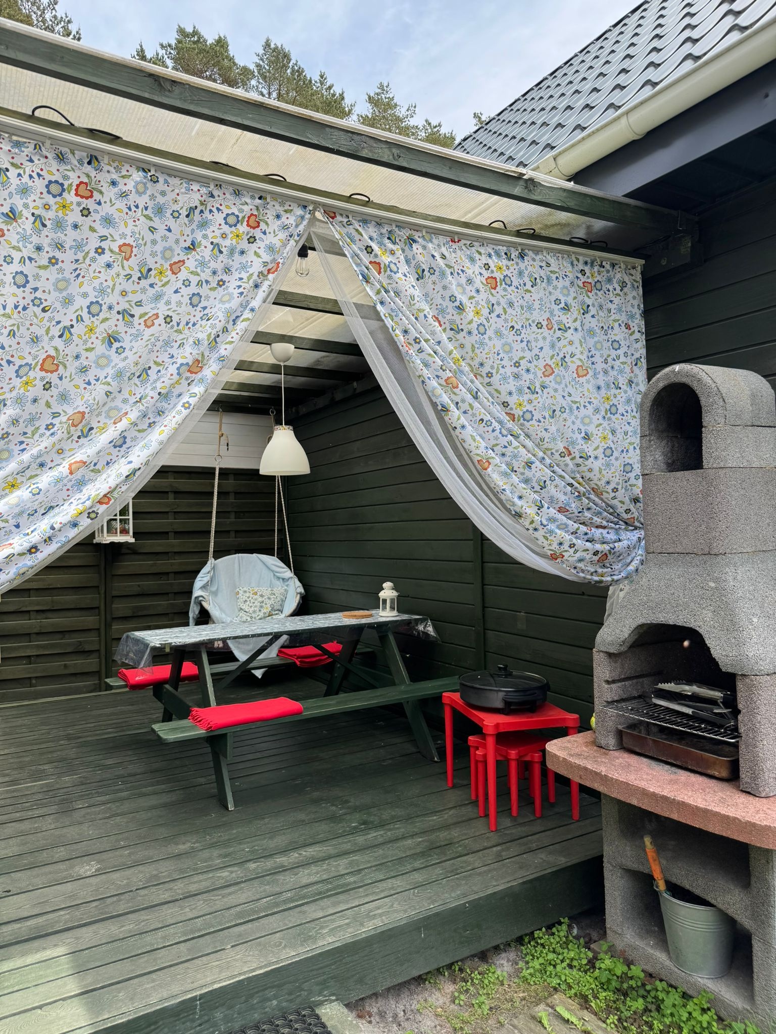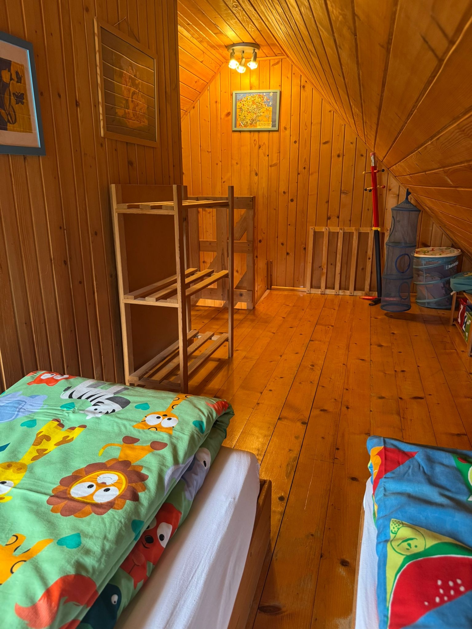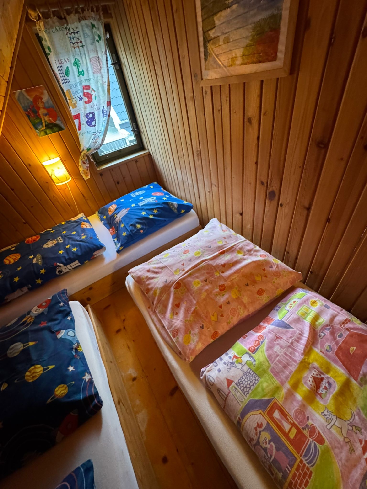 Hiermit laden wir Sie in unsere, am Waldrand gelegenen Ferienhäuser für insgesamt vier mal sechs Personen, ganz herzlich ein. Im Erdgeschoss befindet sich ein Aufenthaltsraum mit den notwendigen Küchen- und Kochutensilien für den täglichen Gebrauch und ein Bad mit Dusch. Im Wohnzimmer befinden sich ein Schlafsofa für zwei Personen, ein Tisch mit Stühlen, ein Sofa, ein dreitüriger Schrank, Tv, Radio, Bügelbrett und das dazugehörige Bügeleisen. Das erste Stockwerk ist durch eine Holzwand in zwei gleich große Zimmer geteilt, in denen sich jeweils zwei Einzelbetten befinden. Zur Einrichtung lässt sich sagen, dass das eine Zimmer als Eltern-Schlafzimmer gedacht ist und deshalb die Betten zusammengeschoben sind. Das Zimmer nebenan wird meist, als Kinderzimmer genutzt. Zu Ihrer Verfügung stehen auch alle Art Strandutensilien, wie zum Beispiel: Ein Strandwagen, Windschutz, Stranddecke, Liegestühle, Gartenmöbel und ein Grill. Unser Grundstück ist eingezäunt und deshalb sicher, auch die Autos der Gäste werden auf dem Grundstück geparkt.Bis zum Badestrand ist es nur ein Fußweg von 5 min. Wir würden uns freuen, wenn die Abreise bis 10.00 Uhr am Morgen und die Anreise um 16.00 Uhr stattfinden würde.