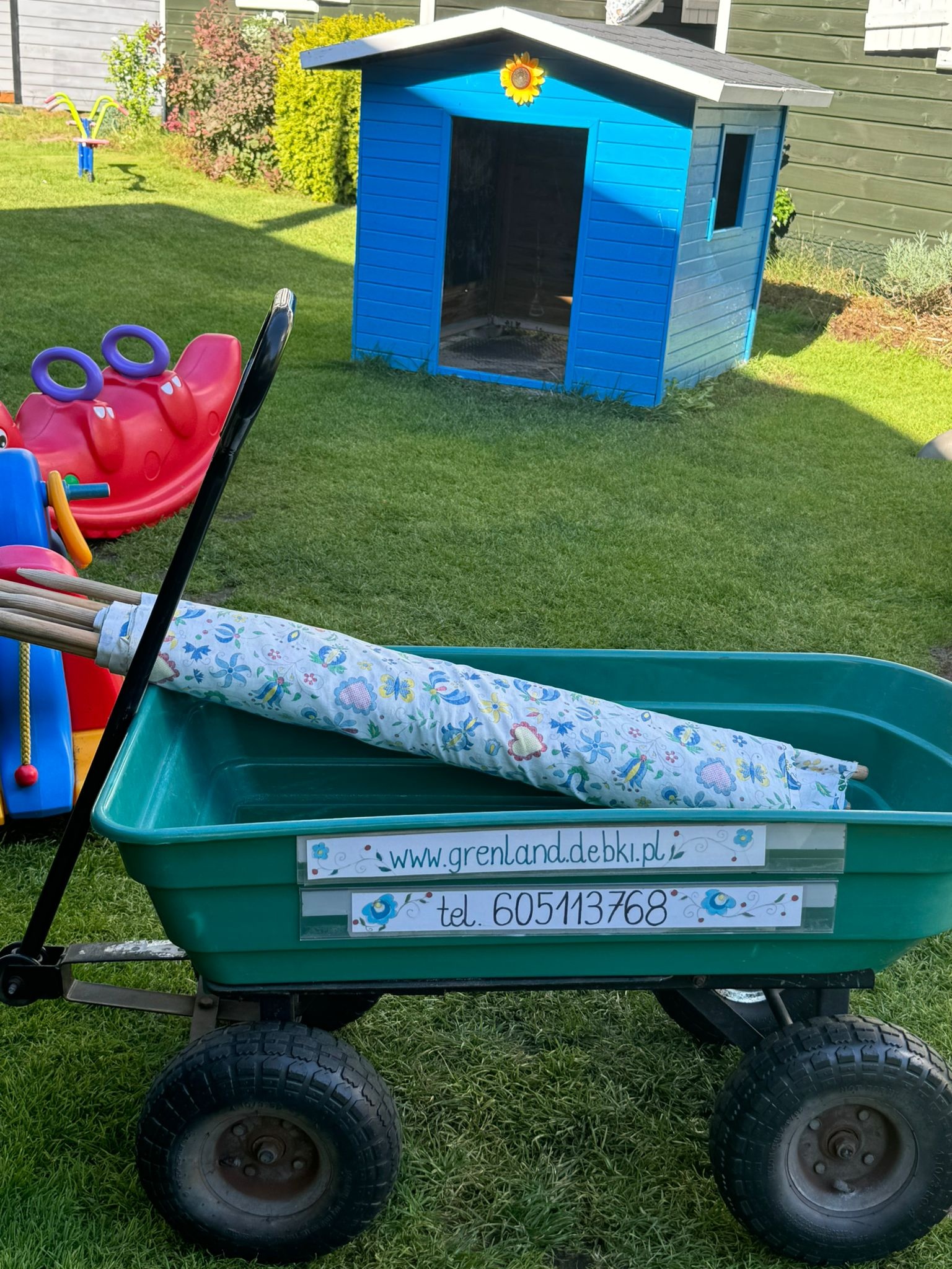 Zu Ihrer Verfügung stehen verschieden Strandutensilien zur Verfügung, darunter Liegestühle, Gartenmöbel, ein Grill sowie ein kleiner Ziehwagen für die Kinder, der den Transport und den Weg zum Strand erleichtert.