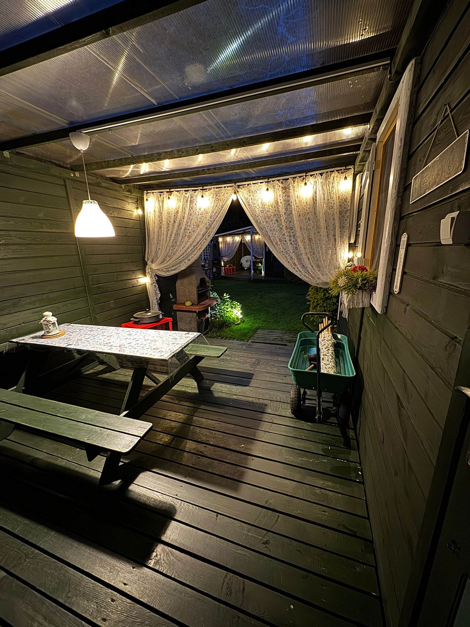 Im Erdgeschoss befindet sich ein Aufenthaltsraum mit einer voll ausgestatteten Küche für den täglichen Gebrauch sowie ein Badezimmer mit Dusche. Das Wohnzimmer ist mit einem Schlafsofa, einem Tisch mit Stühlen, einem dreitürigen Kleiderschrank, TV, Bügelbrett und Bügeleisen ausgestattet.